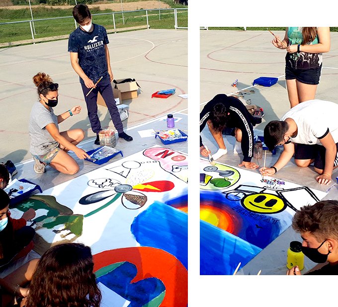En las Escuelas, Centros Culturales y los Ayuntamientos nos llaman para realizar formaciones de pintura mural tanto a nivel infantil, adolescentes o adultos.